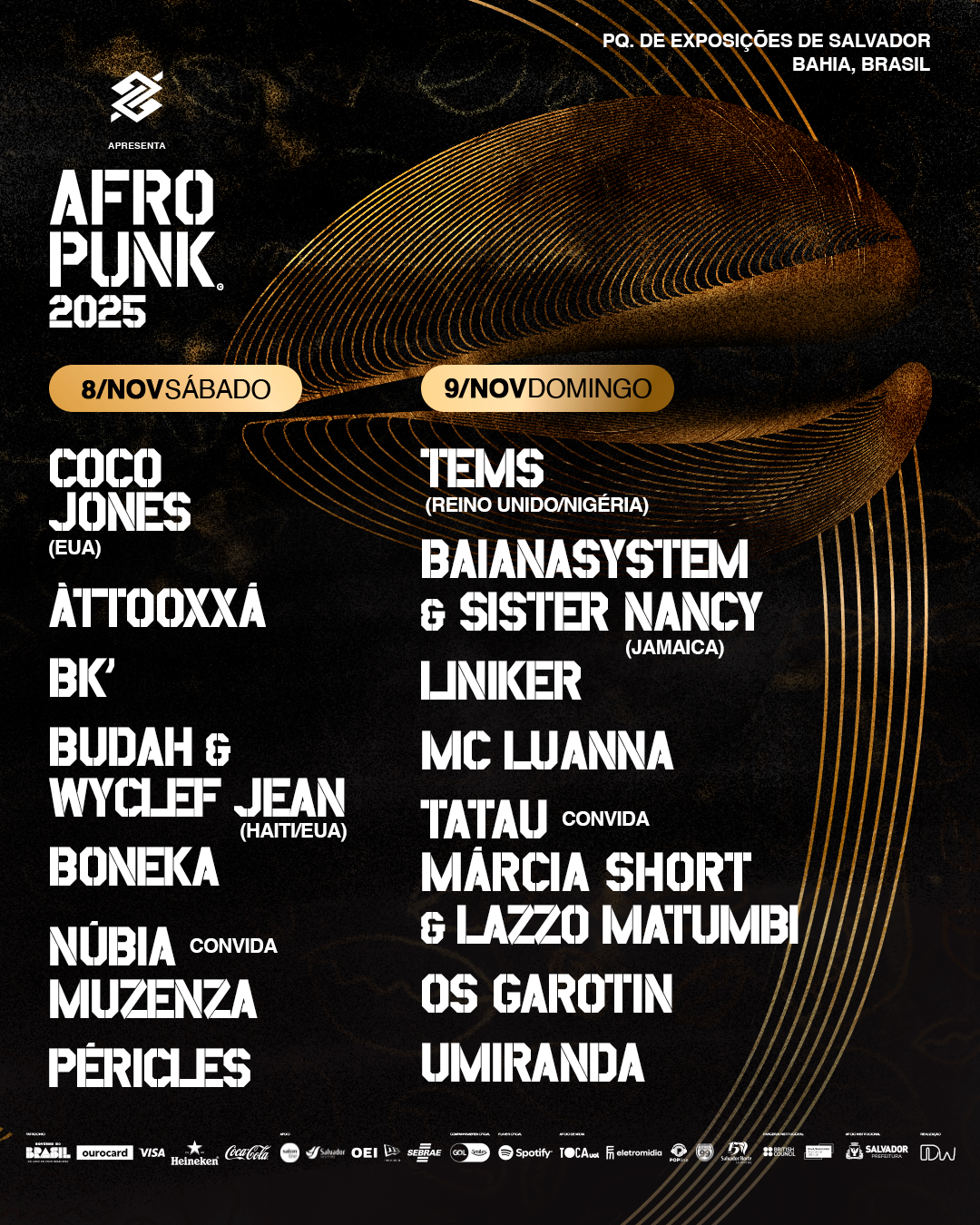 O AFROPUNK Brasil chega à sua quinta edição nos dias 8 e 9 de novembro, em Salvador, consolidado como um dos festivais mais importantes da cena cultural brasileira. Com 19 atrações e uma curadoria que conecta gerações, sonoridades e experiências afro-diaspóricas, o evento promete dois dias de celebração no Parque de Exposições, reafirmando a capital baiana como epicentro da música negra global.