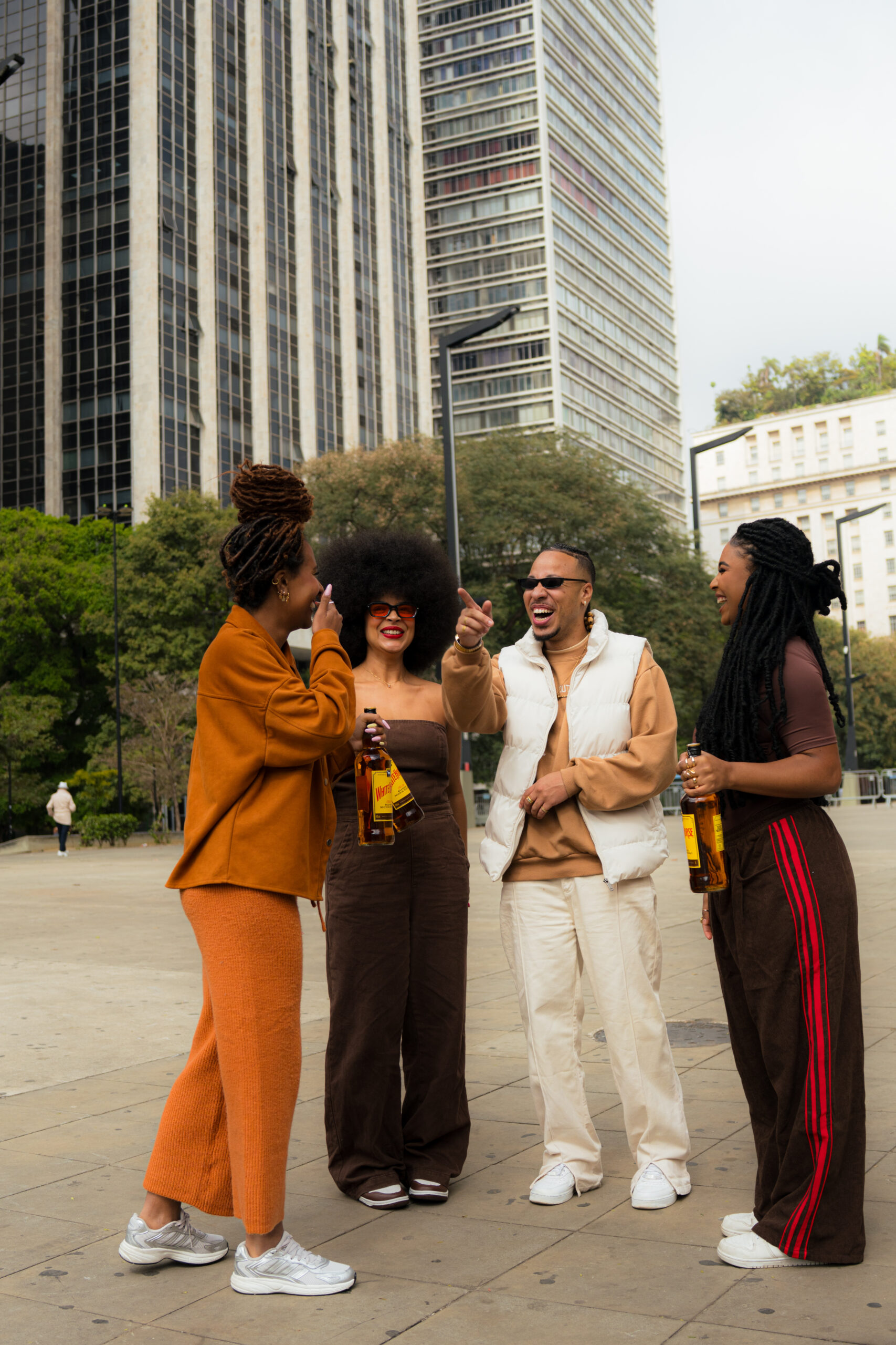 E quando a música conquista, o gesto é coletivo: erguer o copo, brindar junto, celebrar o feito. O ritual não está no líquido em si, mas no encontro. Da laje ao palco principal de um festival, a celebração segue sendo a mesma compartilhada, potente e comunitária.