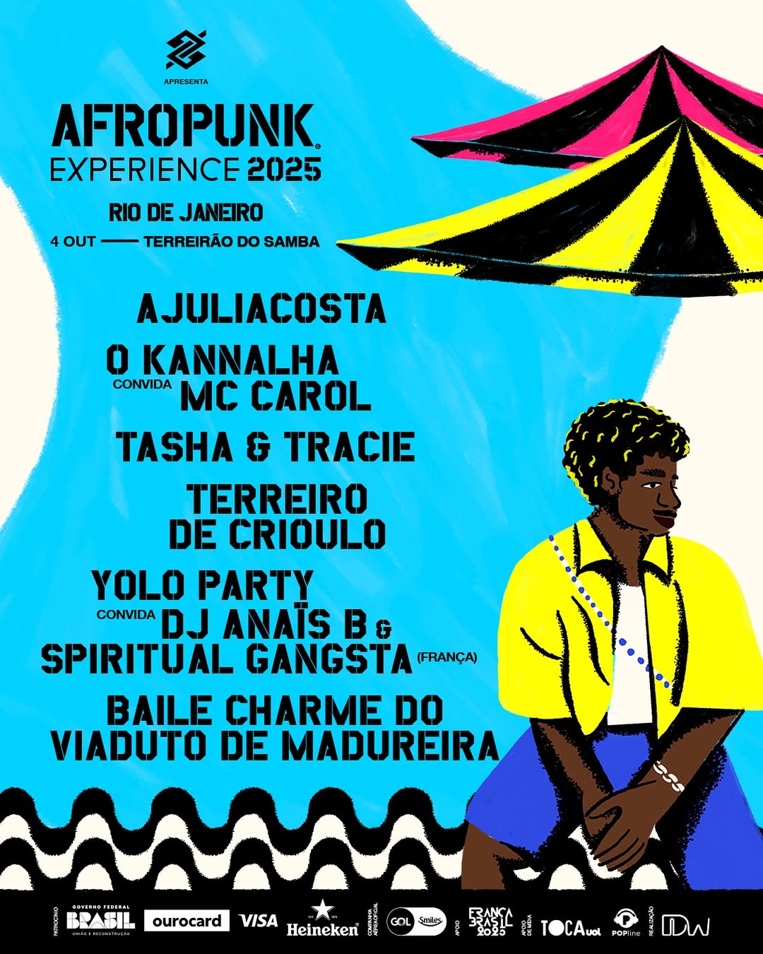 O AFROPUNK Experience Rio de Janeiro, que conta com patrocínio master do Banco do Brasil, patrocínio da Heineken, Spotify como player oficial, e apoio da GOL Linhas Aéreas, acontece no dia 4 de outubro de 2025, no Terreirão do Samba (R. Benedito Hipólito, 66, Centro do Rio de Janeiro). Os ingressos estão disponíveis pelo site afropunk.byinti.com.