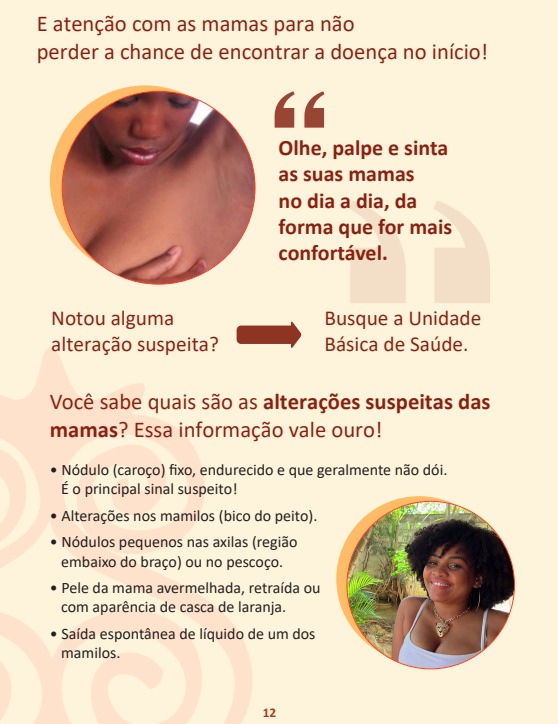 Saúde com Axé: mulheres negras e prevenção do câncer está disponível gratuitamente em formato digital no site do INCA e pode ser acessada por qualquer pessoa interessada em informação culturalmente sensível sobre prevenção do câncer, clique aqui.