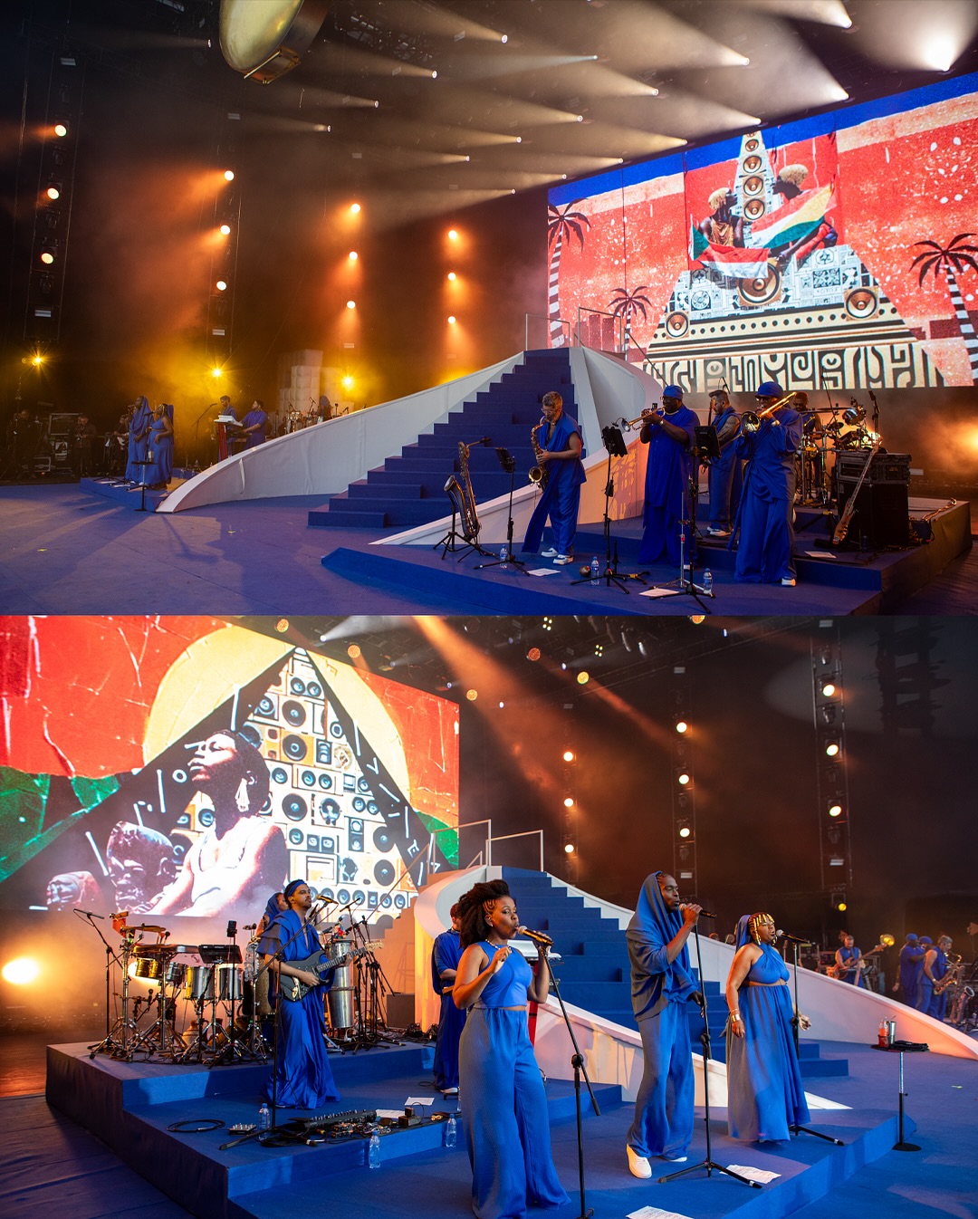 No palco, IZA apresentou músicas novas como “Caos e Sal” e o single duplo que inclui “Tão Bonito”, misturando referências brasileiras com uma forte pegada de reggae. Também homenageou clássicos do gênero, trazendo versões que reverenciaram nomes como Bob Marley, além de evocar ritmos marcantes da diáspora, como o Olodum.