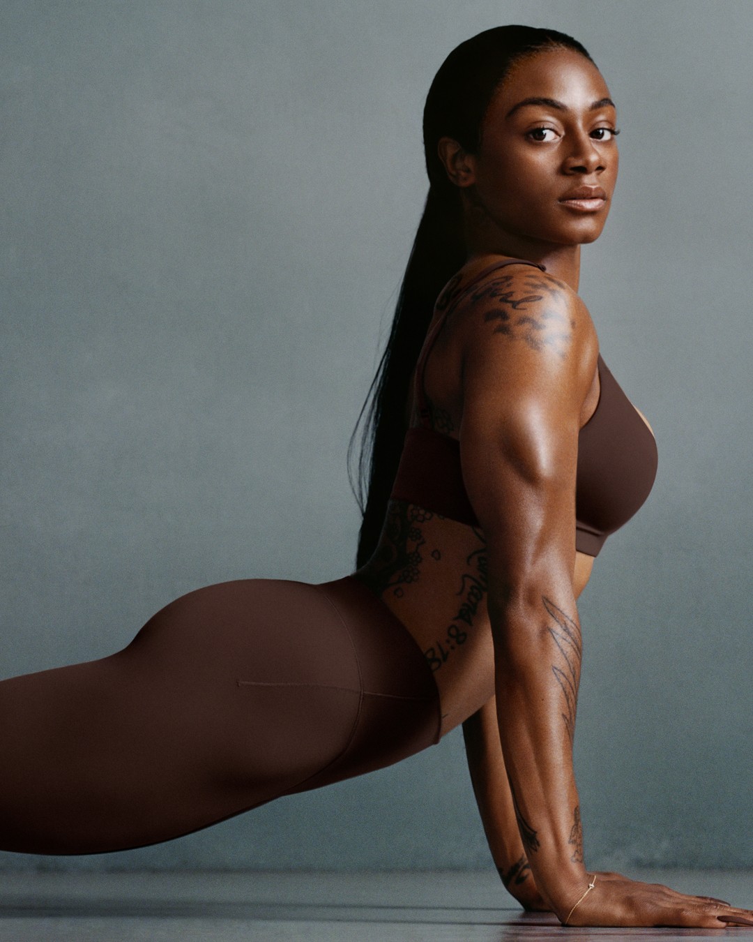 “NikeSKIMS me faz sentir confiante e livre. É incrível poder trabalhar duro e ainda assim me sentir bem vestida.”