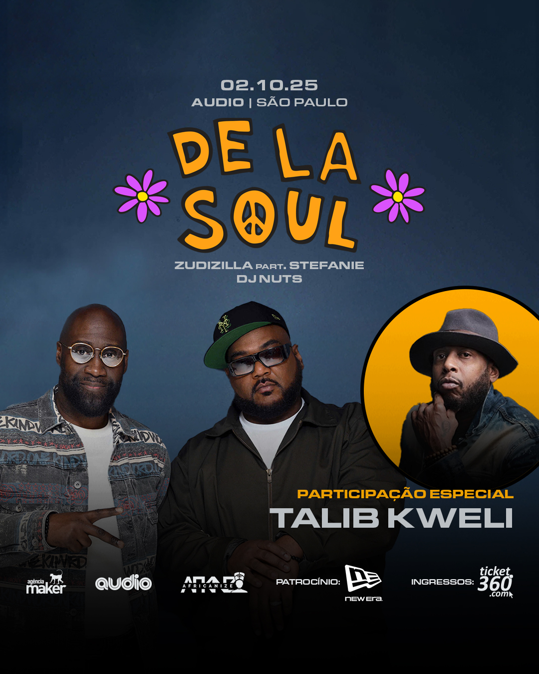 Desde então, Talib Kweli construiu uma discografia marcante, com álbuns como Quality (2002) e parcerias com nomes como Kanye West, Common e Hi-Tek, reforçando sua posição como voz fundamental do rap engajado. Antes da apresentação ao lado do De La Soul, o rapper também fará duas sessões intimistas no Blue Note São Paulo, nos dias 30 de setembro e 1º de outubro.